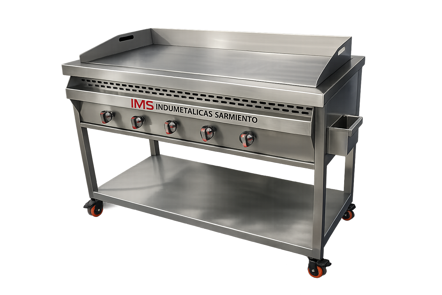 Plancha industrial en acero inoxidable, diseñada para cocción uniforme y continua, ideal para cocinas comerciales por su resistencia, fácil limpieza y alto rendimiento.