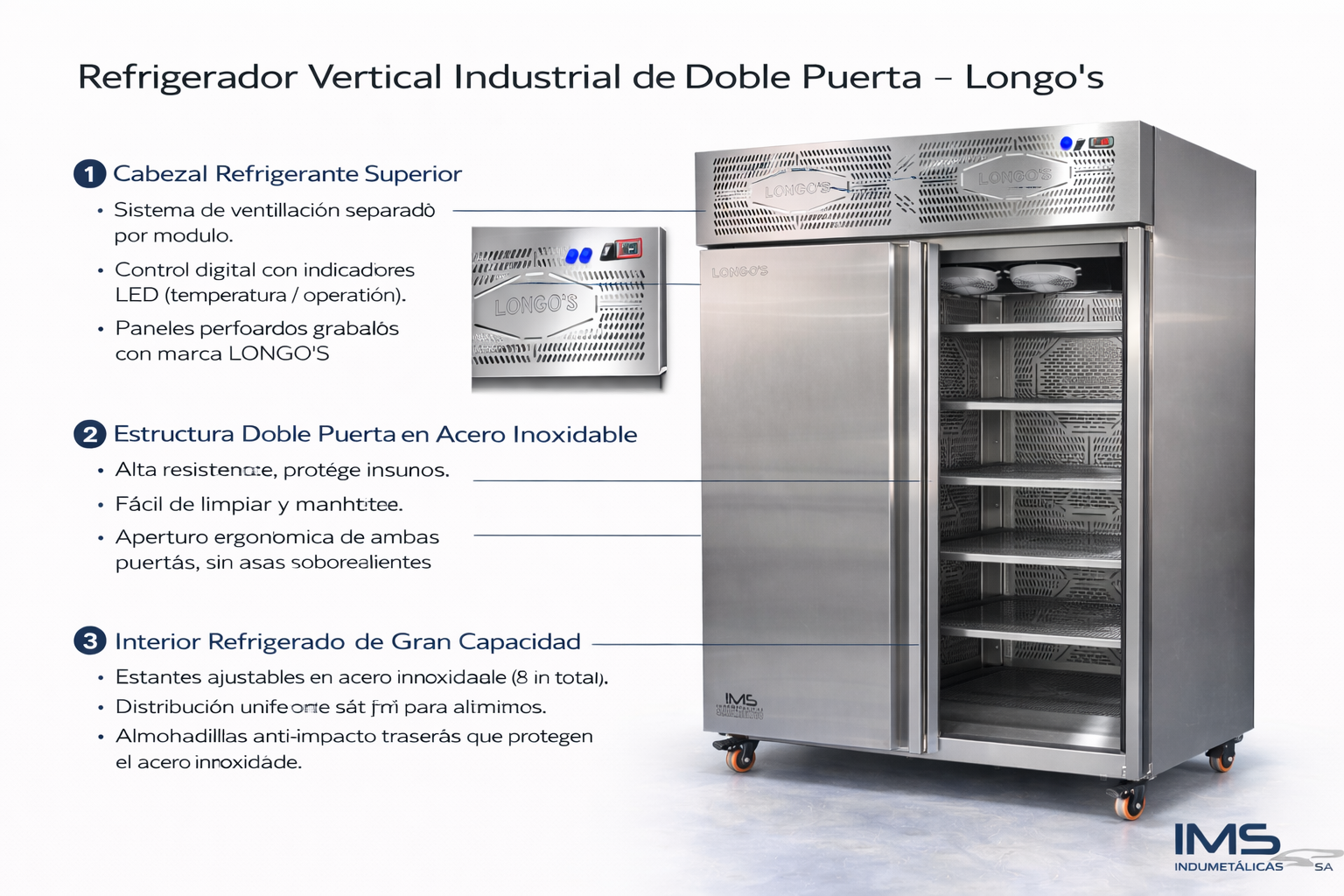 Presentamos un proyecto de refrigeración industrial desarrollado a la medida, que integra diseño, fabricación, instalación y puesta en marcha de un equipo vertical en acero inoxidable con doble puerta. Este proyecto fue concebido para responder a una necesidad específica de almacenamiento seguro, organizado y de alto volumen, garantizando condiciones óptimas de conservación en un entorno de operación exigente.